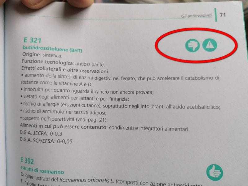 Questo conservante, contenuto nel chewing gum qui illustrato nell’immagine, è controverso sebbene attualmente permesso e autorizzato nell’industria alimentare. Infatti gli studi che sono stati condotti sugli animali hanno evidenziato dei problemi a carico della tiroide, dell’apparato riproduttivo e del fegato (tumore epatico). Ciò nonostante, gli esperti europei dell’EFSA (Autorità Europea per la Sicurezza Alimentare) ritengono che questa sostanza sia sicura e non comporti problemi di salute per il consumatore se il consumo rimane entro la soglia della dose giornaliera accettabile di 0,05 milligrammi di conservante per chilo di peso corporeo (0,05/Kg/day). La sostanza (E321) viene utilizzata come antiossidante anche nell’industria cosmetica, soprattutto per creme e rossetti, e in quella farmaceutica.