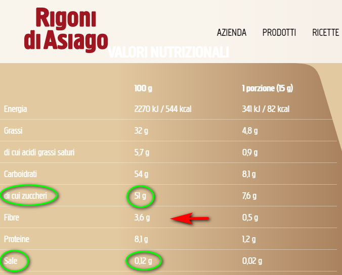 Anche il contenuto di sale è molto più alto nella Nocciolata Rigoni rispetto alla Crema Novi, per la precisione 0,12 grammi nella Nocciolata e 0,09 grammi nella Crema Novi (vedi immagini qui in basso).
