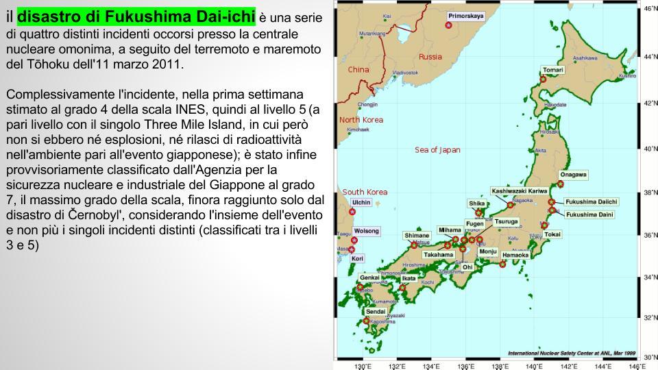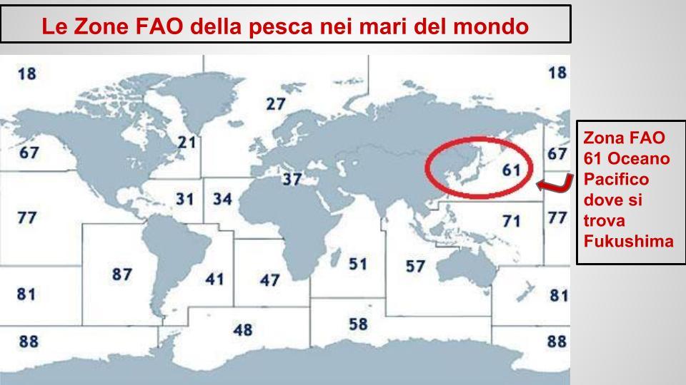 La zona FAO 61 (Mar del Giappone) desta molte preoccupazioni a causa della esplosione di ben 4 reattori nucleari nella Centrale nucleare di Fukushima Daiichi, a seguito del terribile Tsunami con onde alte 14 metri che ha colpito la zona nel Marzo 2011. Molti sono stati gli studi condotti nell’intera zona e nei mari dal 2011 ad oggi e risulta che la radiazione nucleare sia sempre alta e a livelli tali da contaminare la vita nei mari e quindi la salubrità dei pesci che vivono in questi mari. Questo comporta che sebbene la pesca sia consentita in questi mari, sia preferibile, con un principio di precauzione, non acquistare il pesce radioattivo che arriva dalla zona FAO 61.
