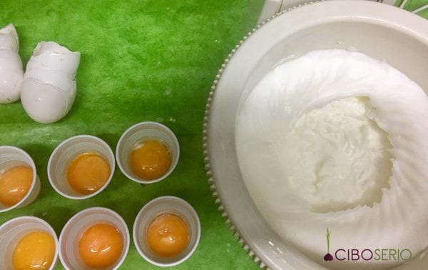 - dividere i tuorli dall’albume e mettere i tuorli singolarmente nei bicchierini