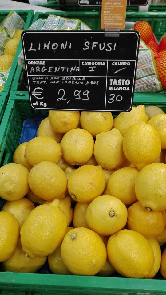 In Estate e per tutto Settembre-Ottobre, nei supermercati italiani campeggiano limoni di provenienza argentina o del Sudafrica e praticamente spariscono i limoni italiani del Sud Italia. Limoni argentini costosissimi fra l’altro, anche oltre 3 euro al chilo! Questi limoni ce li ritroviamo inoltre anche nei nostri aperitivi al bar. E il succo di limone in vendita al supermercato o presente nelle bottigliette alle mense aziendali, da dove pensate che arrivi?