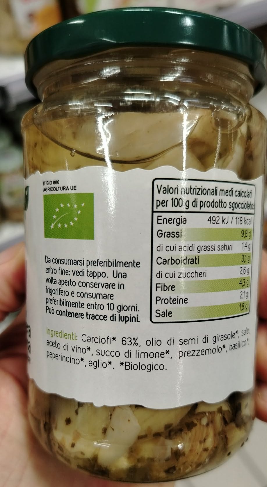 Carciofi i italiani sott’olio coltivati in Puglia, prodotto BIOLOGICO in vendita nei supermercati Conad.