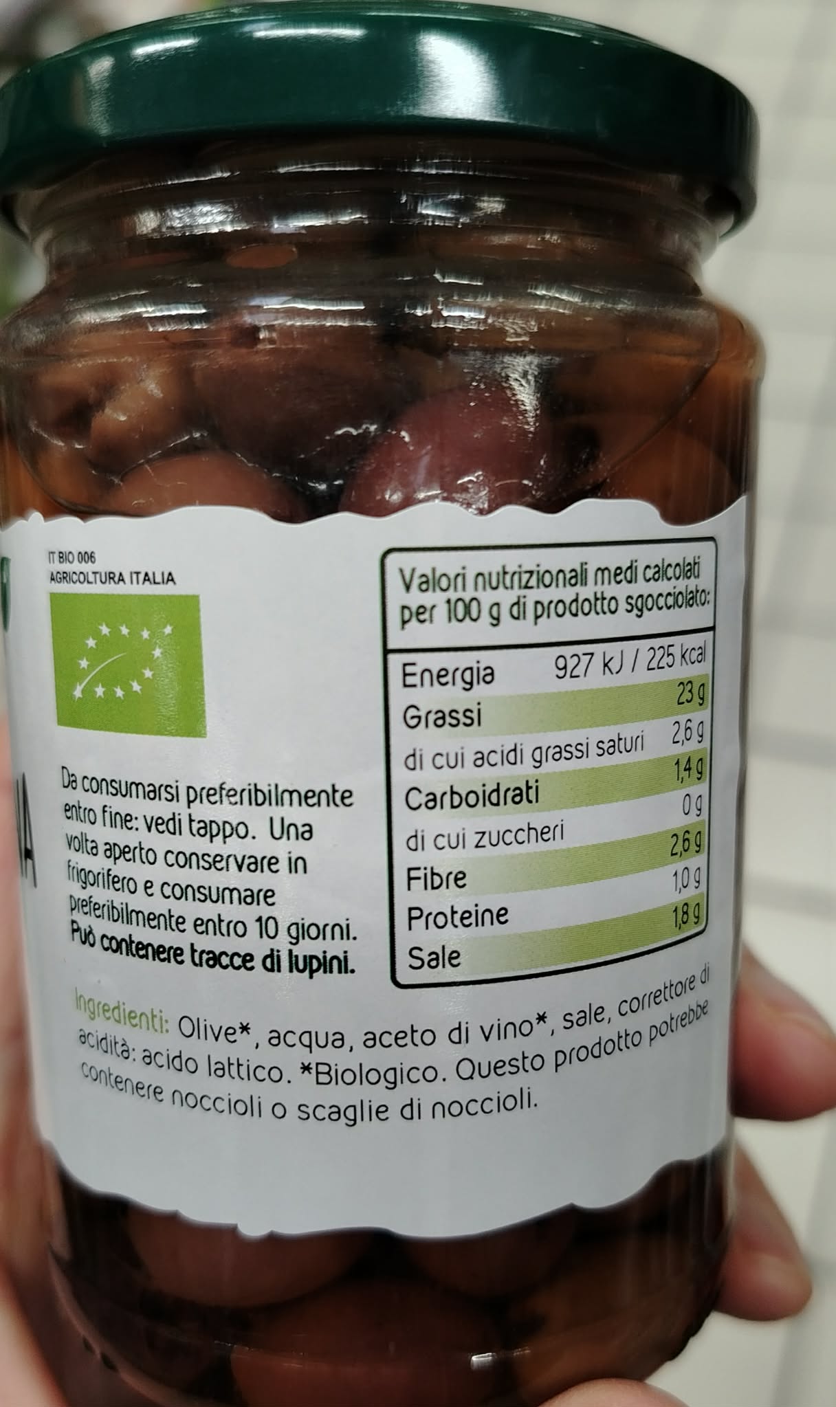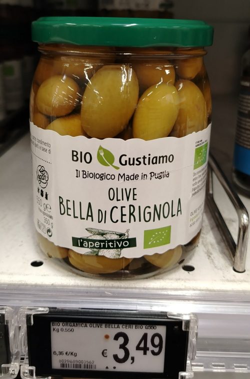 Buon prodotto in vendita nei supermercati Conad : olive nere pugliesi biologiche, varietà Peranzana.